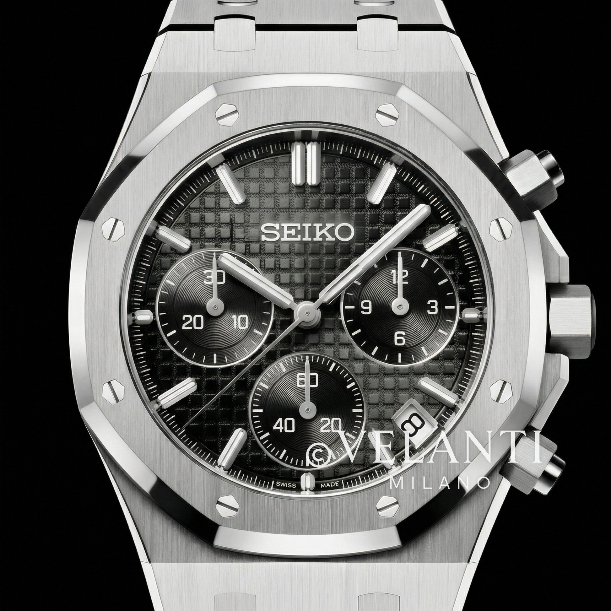 Inspired by the iconic Royal Oak design, and featuring the prestigious Seiko VK63 hybrid movement, we present the Seiko Mod Royal Oak. A 41 mm high-end quality watch combining the perfect alliance between excellence and accessibility.